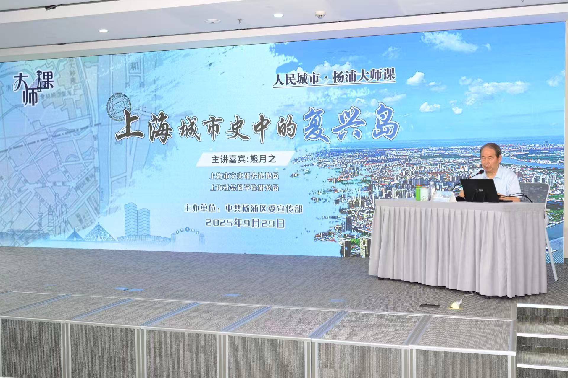人民网上海9月29日电 (记者董志雯)9月29日,由中共杨浦区委宣传部主办的“人民城市·杨浦大师课”第六讲在上海人民城市实践展示馆举办。著名历史学家、上海社会科学院研究员、上海市文史研究馆馆员熊月之以“上海城市史中的复兴岛”为主题,为现场听众带来一场内容丰富、脉络清晰的城市历史讲座。